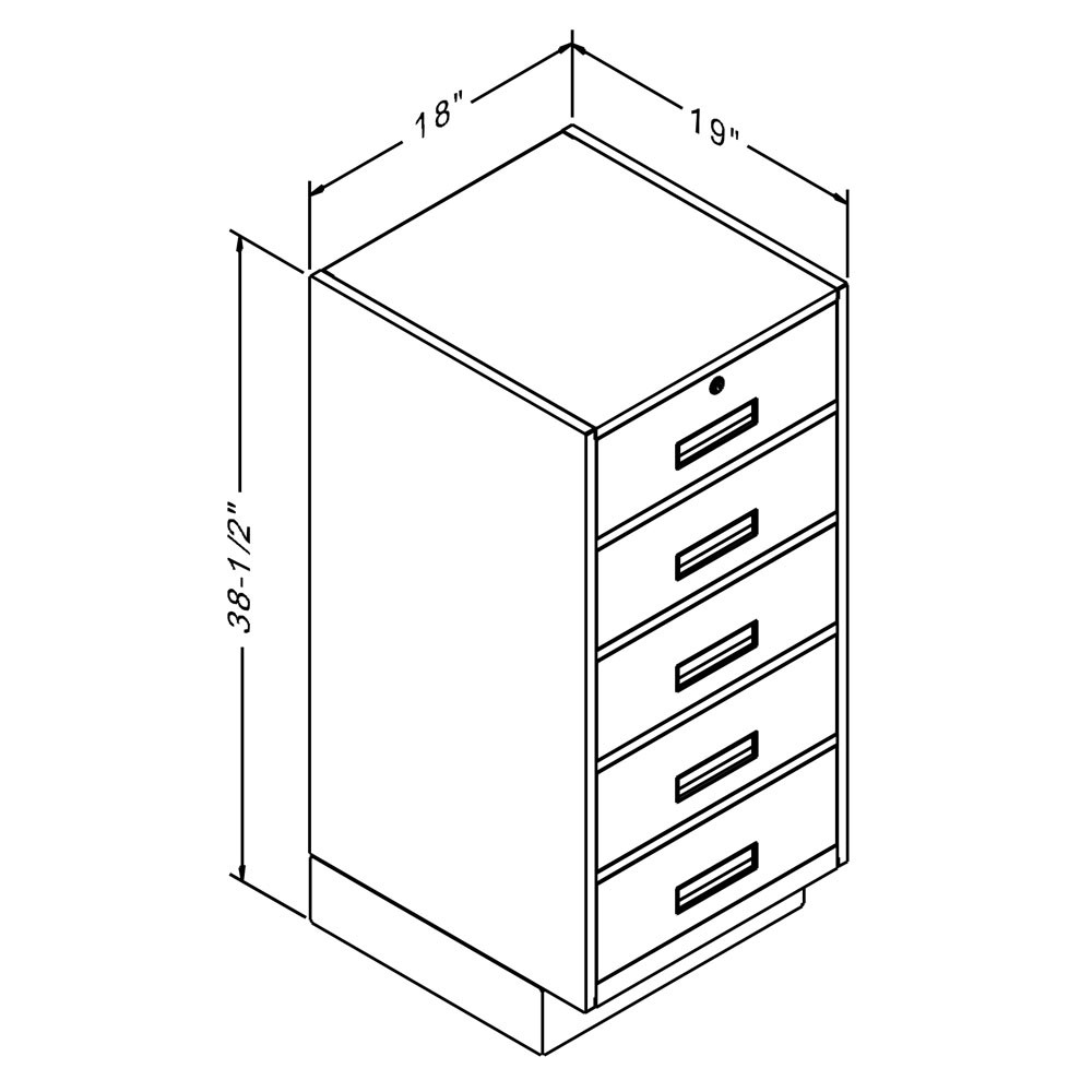 - Fenco 5-Drawer Teller Pedestal Unit Size: 18W x 38-1/2H x 19D w/ 4H x 3D toe space