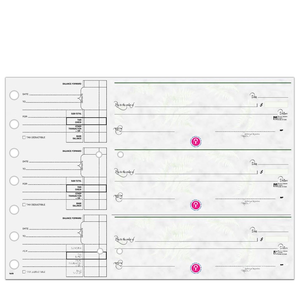 - Ink: Laser-safe colored PMS pantograph inks with digital offset black MICR ink