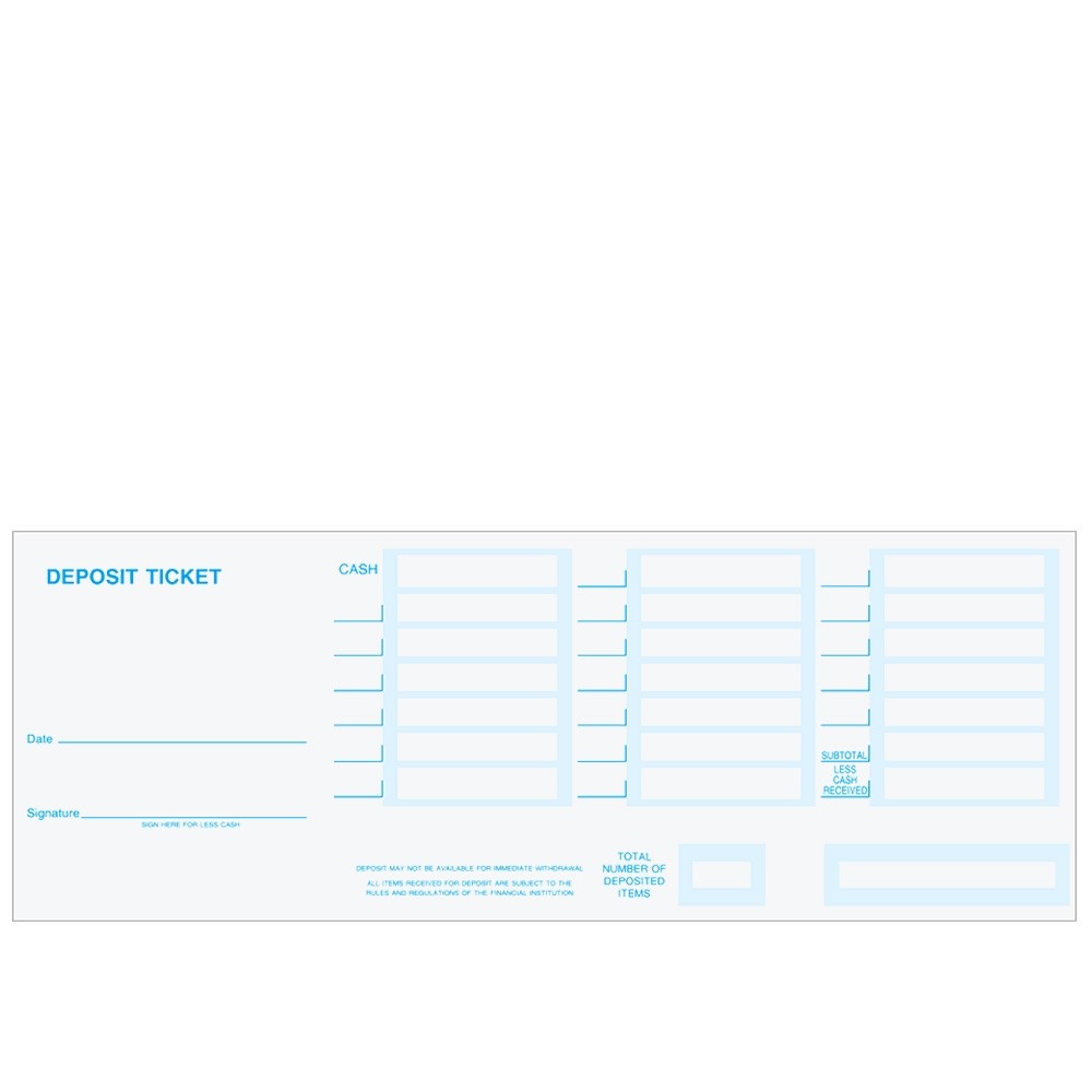 - Deposit Ticket Size: 8-1/2W x 3-1/2H
