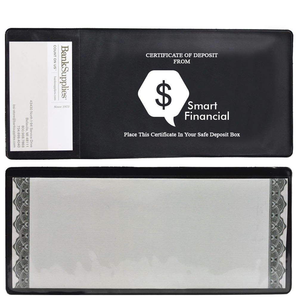 These document holders provide a safe place to store important documents and certicates. Each policy holder includes a clear card holder to display your business card with ease. Heavy duty vinyl construction provides protection against damage and wear.