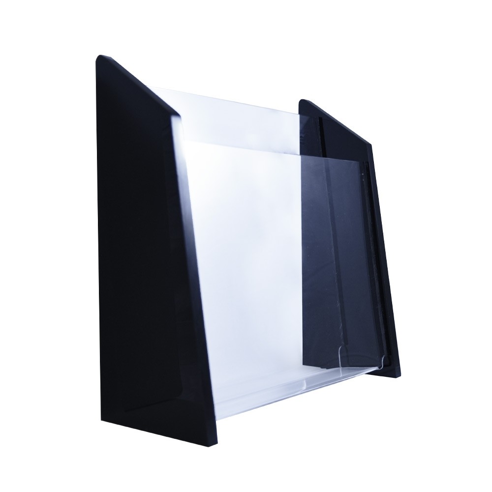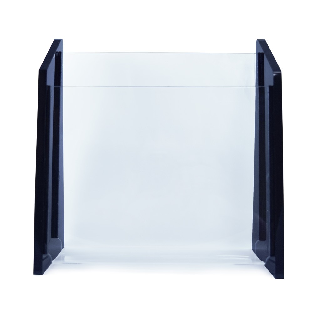 - Handcrafted design of 3/8" thick polished black acrylic sides and clear acrylic pockets