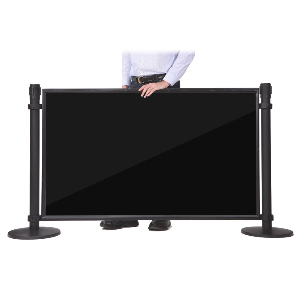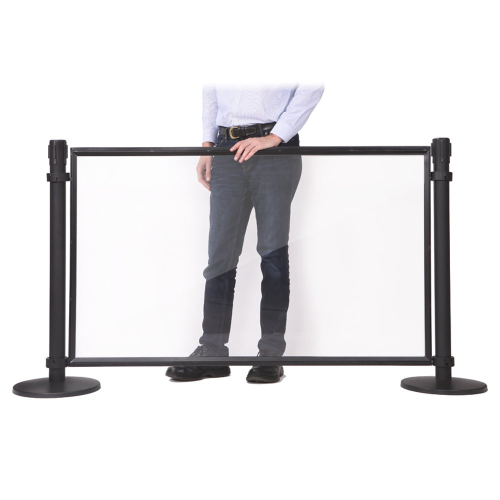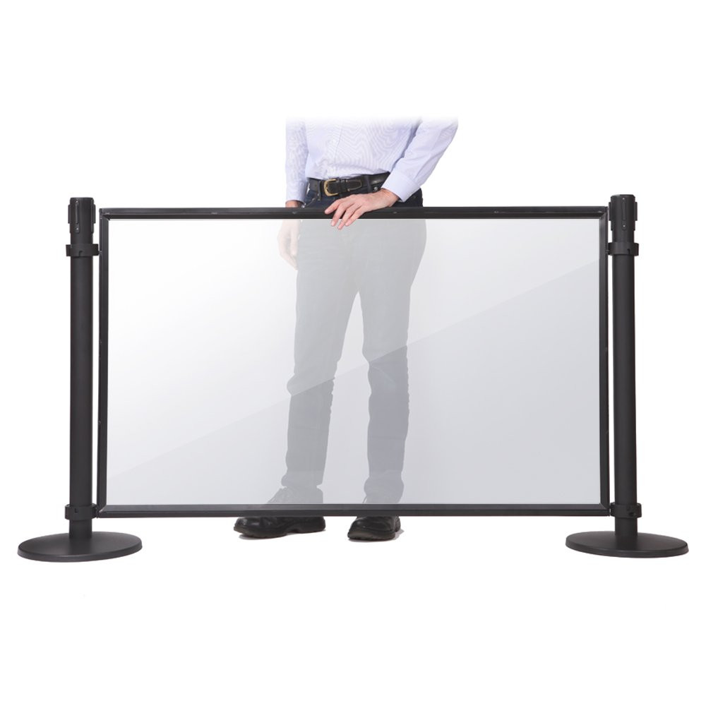 Panels provide a solid barrier between runs in a corral. They can be used to define a space such as an outdoor dinning or security area. Can be fitted to most brands of queueing stanchions and provides a large display area for a marketing message.