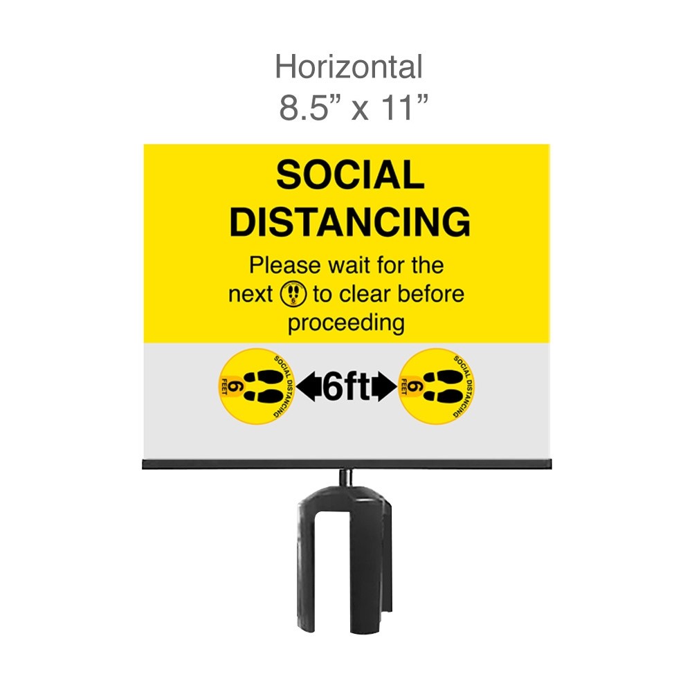 - Sign reads: "SOCIAL DISTANCING - Please wait for the next (decal image) to clear before proceeding"