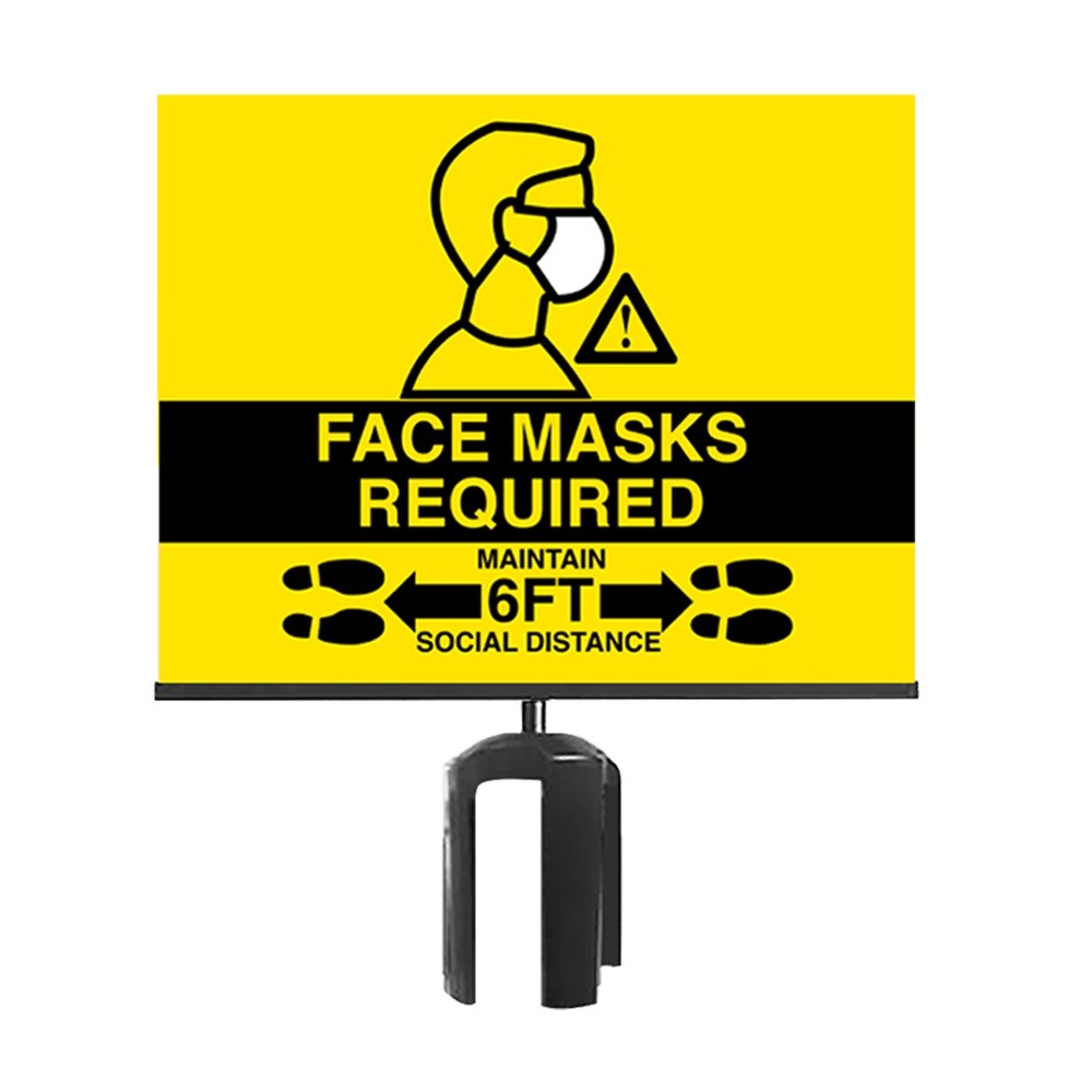 - Sign reads: "FACE MASKS REQUIRED MAINTAIN 6FT SOCIAL DISTANCE"