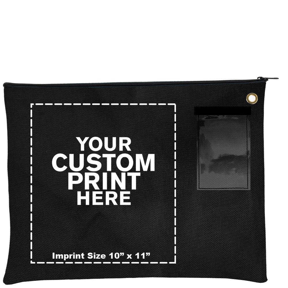 Black 200 Denier Nylon 1-Color Imprinted Large Zipper Deposit Bag - 18W x 14H