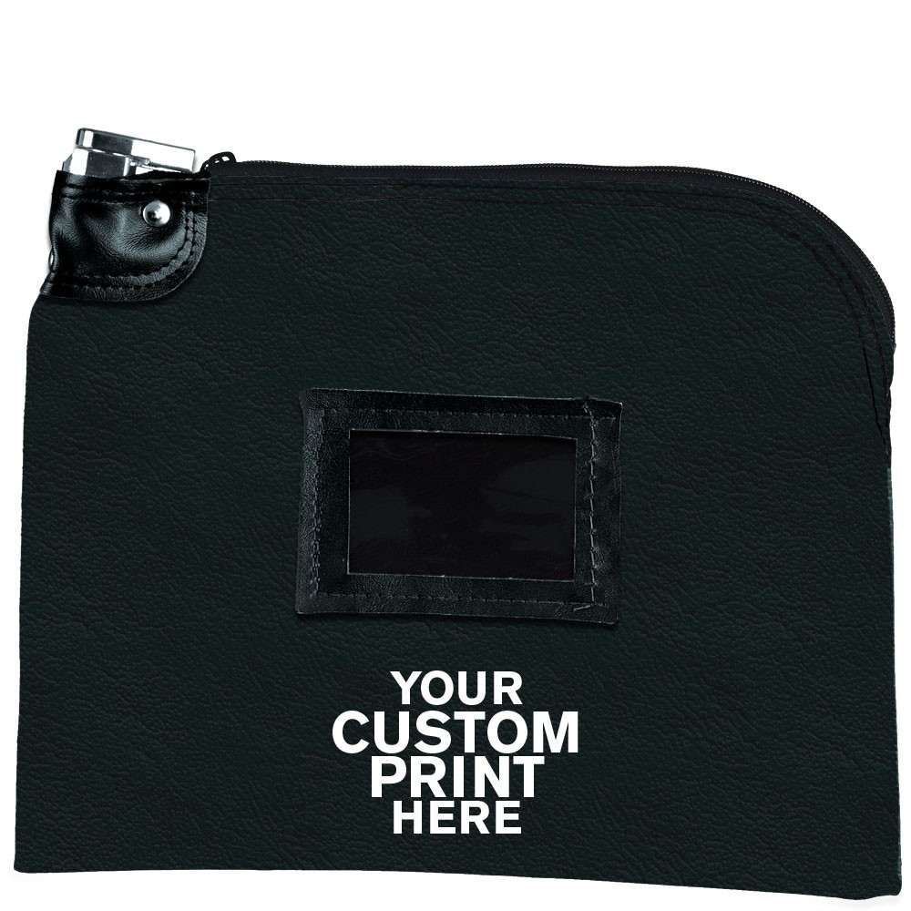 Imprinted Black Locking Bag 12W x 9H-Exp Vinyl, Keyed Alike Lock, Framed Cardholder