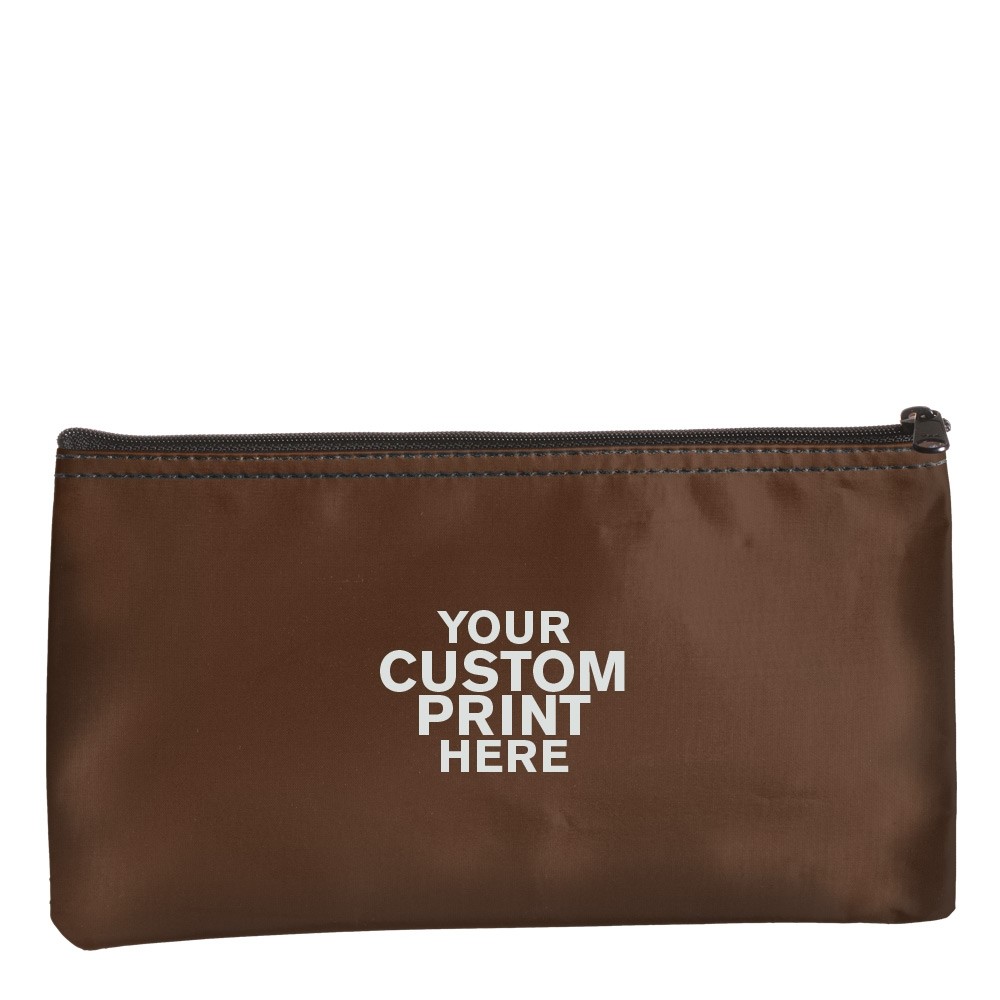 Brown 1-Color Horizontal Zipper Bag - 10-1/2W x 5-1/2H - Laminated Nylon