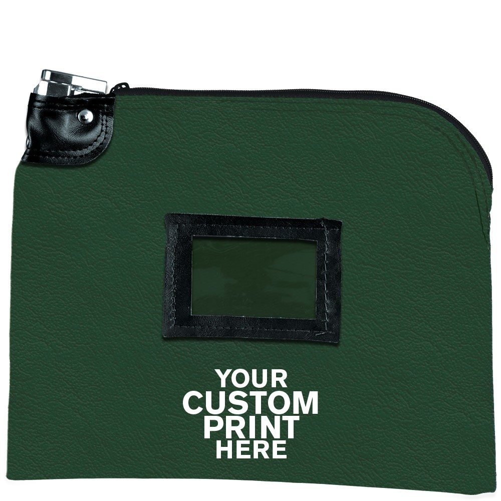 Imprinted Forest Green Locking Bag 12W x 9H-Exp Vinyl, Keyed Alike Lock, Framed Cardholder