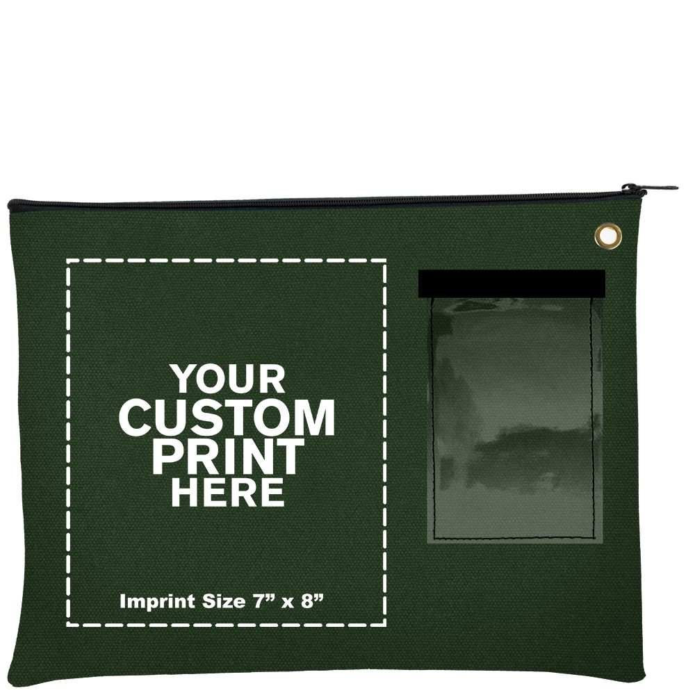 Forest Green 10 oz. Cotton Canvas 1-Color Imprinted Large Zipper Deposit Bag - 14W x 11H