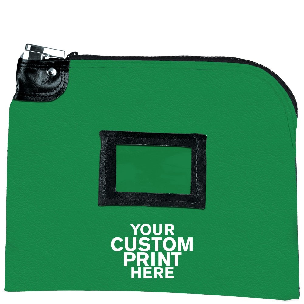 Imprinted Kelly Green Locking Bag 12W x 9H-Exp Vinyl, Master Keyed Lock, Framed Cardholder