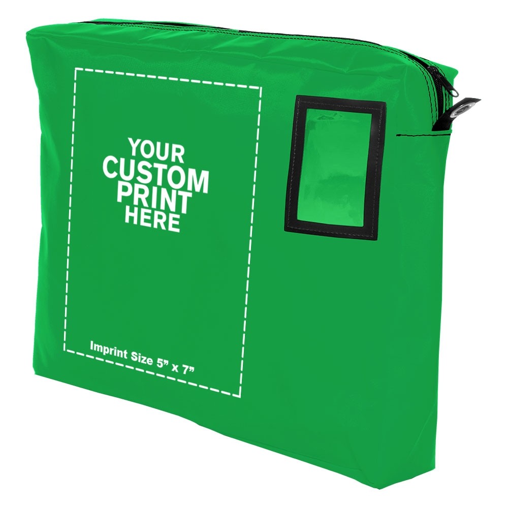 Kelly Green Laminated Nylon 14x11x3 Imprinted Gusseted Large Zipper Bag