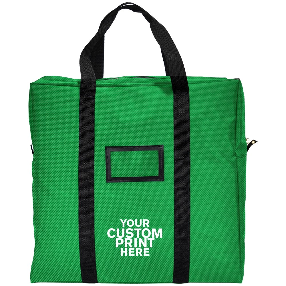 Measuring 20W x 20H x 5D (all bags are made +/- 1/4 in.), our bag offers ample space for your cassettes while maintaining a compact size for transport. The black-framed 5W x 3H cardholder provides convenient labeling for identification purposes.