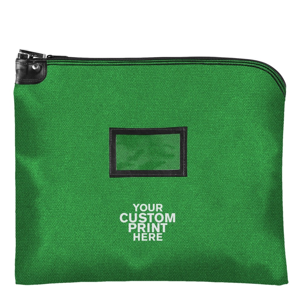 Kelly Green 14 oz. Cotton Canvas 1-Color Imprinted Locking Deposit Bag with Cardholder - 19W x 15H - Keyed Alike