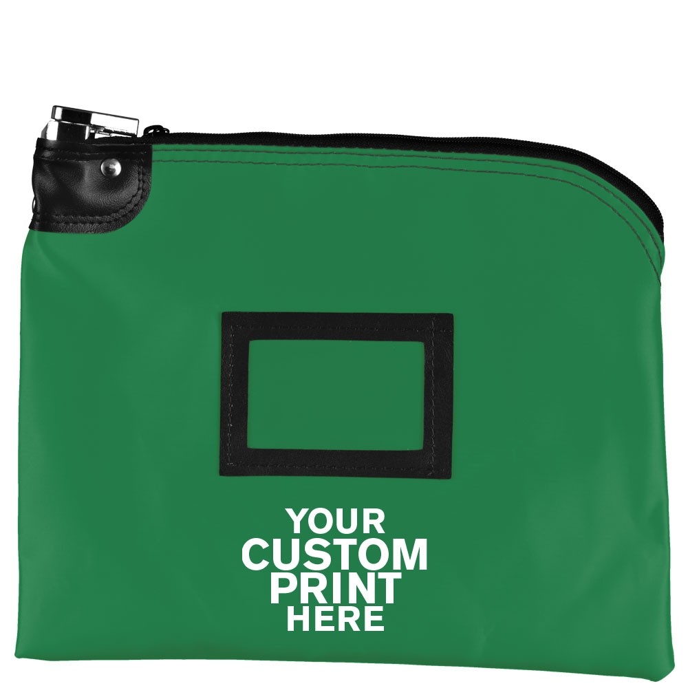 Kelly Green Laminated Nylon 1-Color Imprinted Locking Deposit Bag - 12W x 9H - Master-Keyed