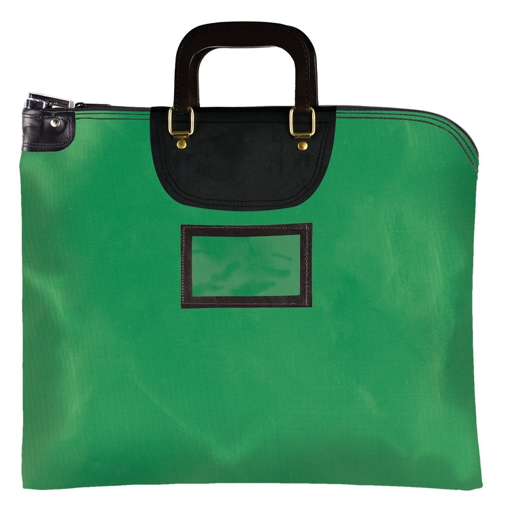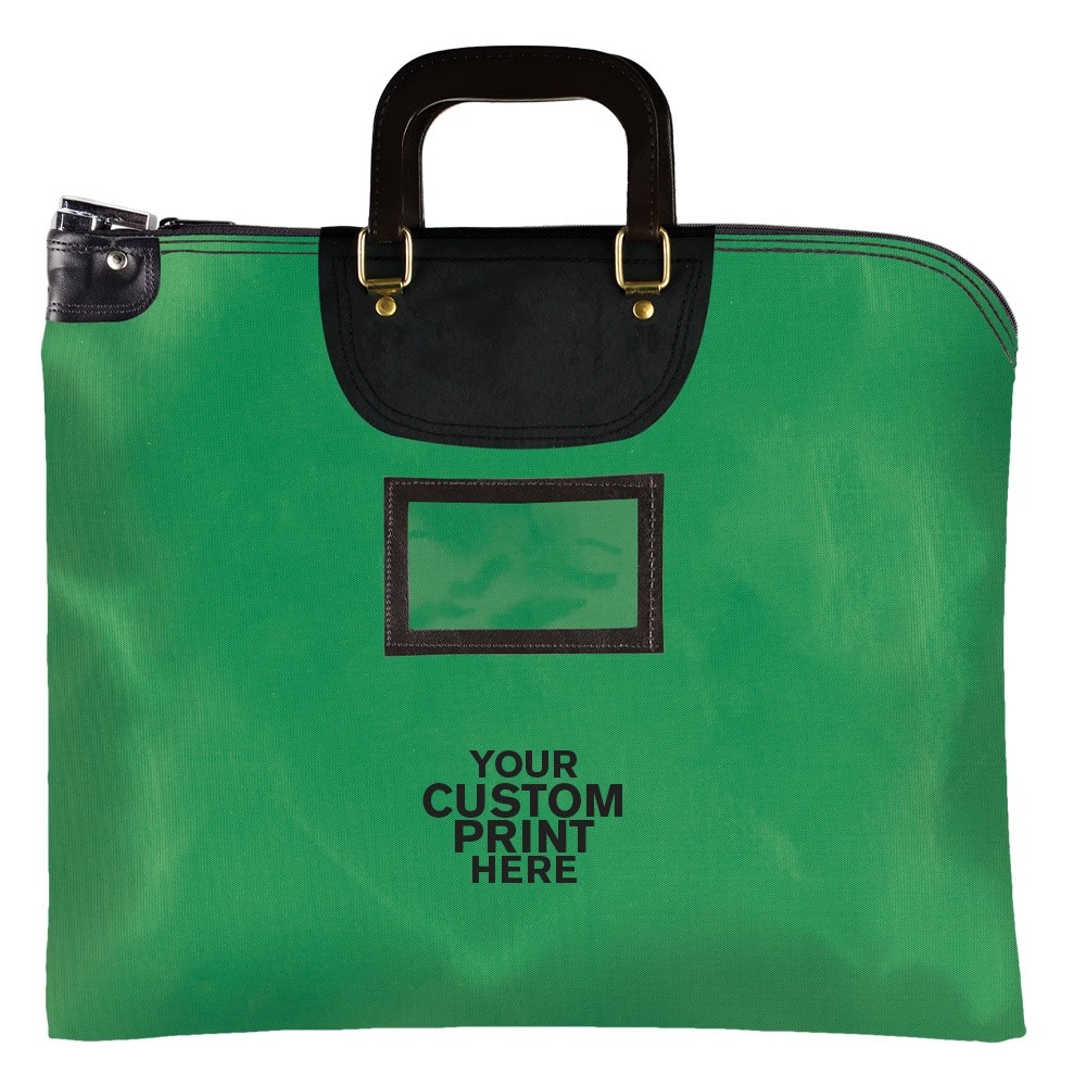 Kelly Green Laminated Nylon 1-Color Imprinted Locking Deposit Bag with Handle - 19W x 15H - Keyed Alike