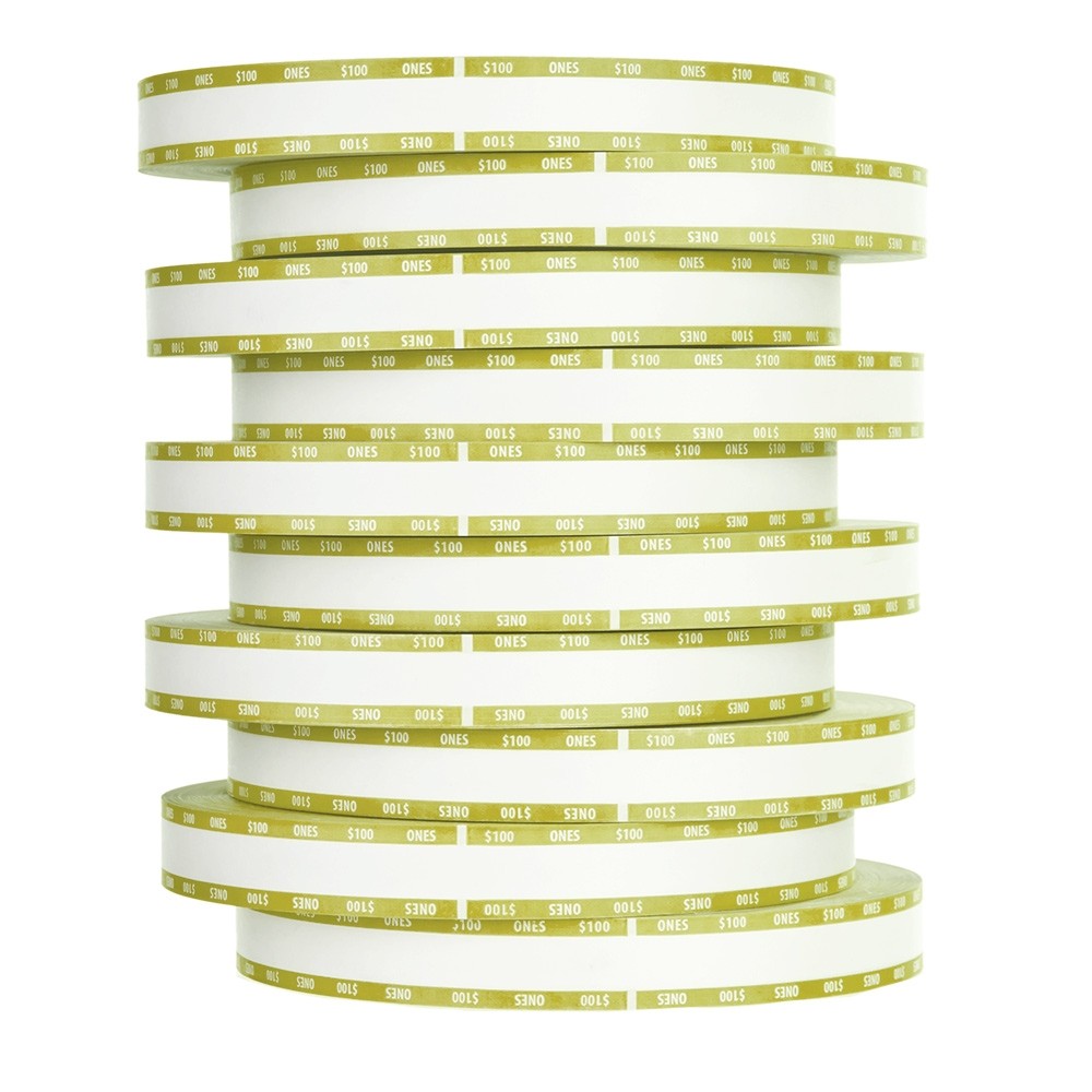Bill strap rolls for automatic currency strapping machines. Compatible with Giesecke & Devrient (G&D) currency banding/counting machines. Colors and denominations conform to the ABA standards. Made to Federal Reserve specifications.