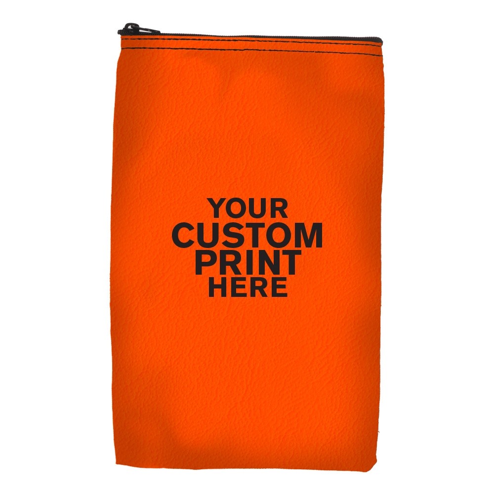 Optimize your storage with our custom vertical zipper wallet bags. Measuring 6-1/2W x 10H, and crafted with double-stitched seams, our vertical money bag ensures extra strength and durability, perfect for securely storing deposit slips, cash, coins, checks, and receipts.