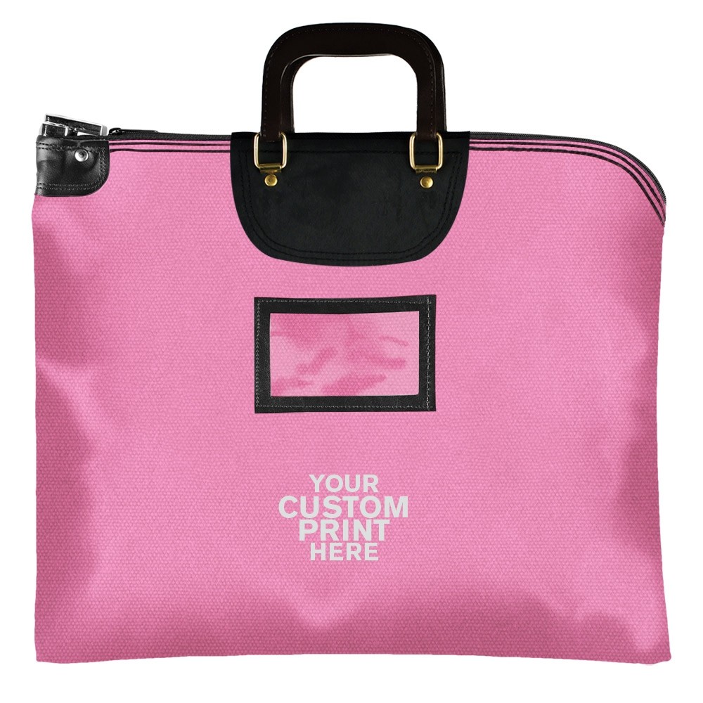 Pink 14 oz. Cotton Canvas 1-Color Imprinted Locking Deposit Bag with Handle and Cardholder - 19W x 15H - Keyed Differently