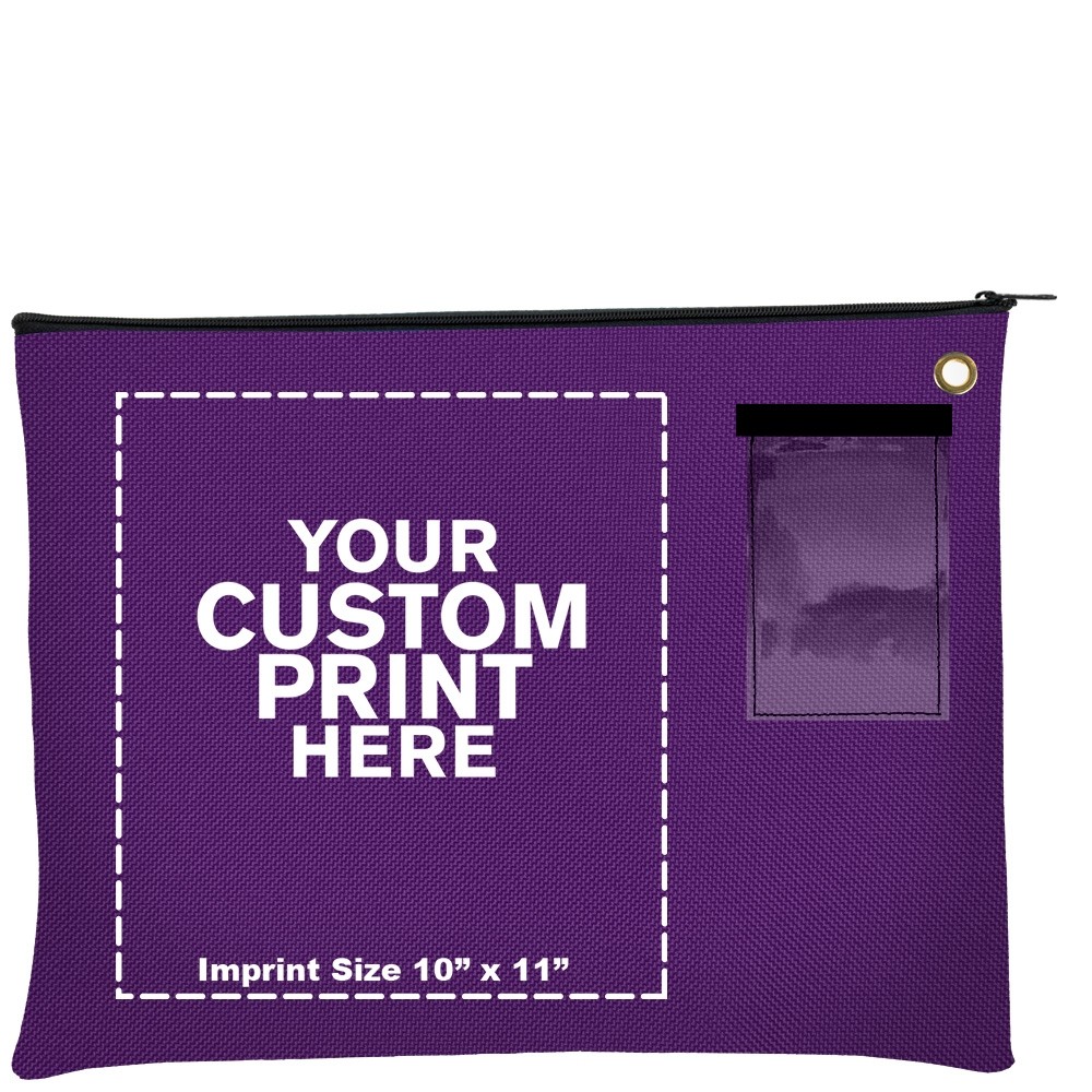 Purple 1000 Denier Nylon 1-Color Imprinted Large Zipper Deposit Bag - 18W x 14H