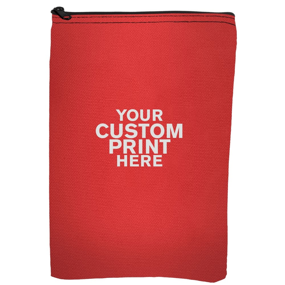 Optimize your storage with our custom vertical zipper wallet bags. Measuring 9W x 12H, and crafted with double-stitched seams, our vertical money bag ensures extra strength and durability, perfect for securely storing deposit slips, cash, coins, checks, and receipts.