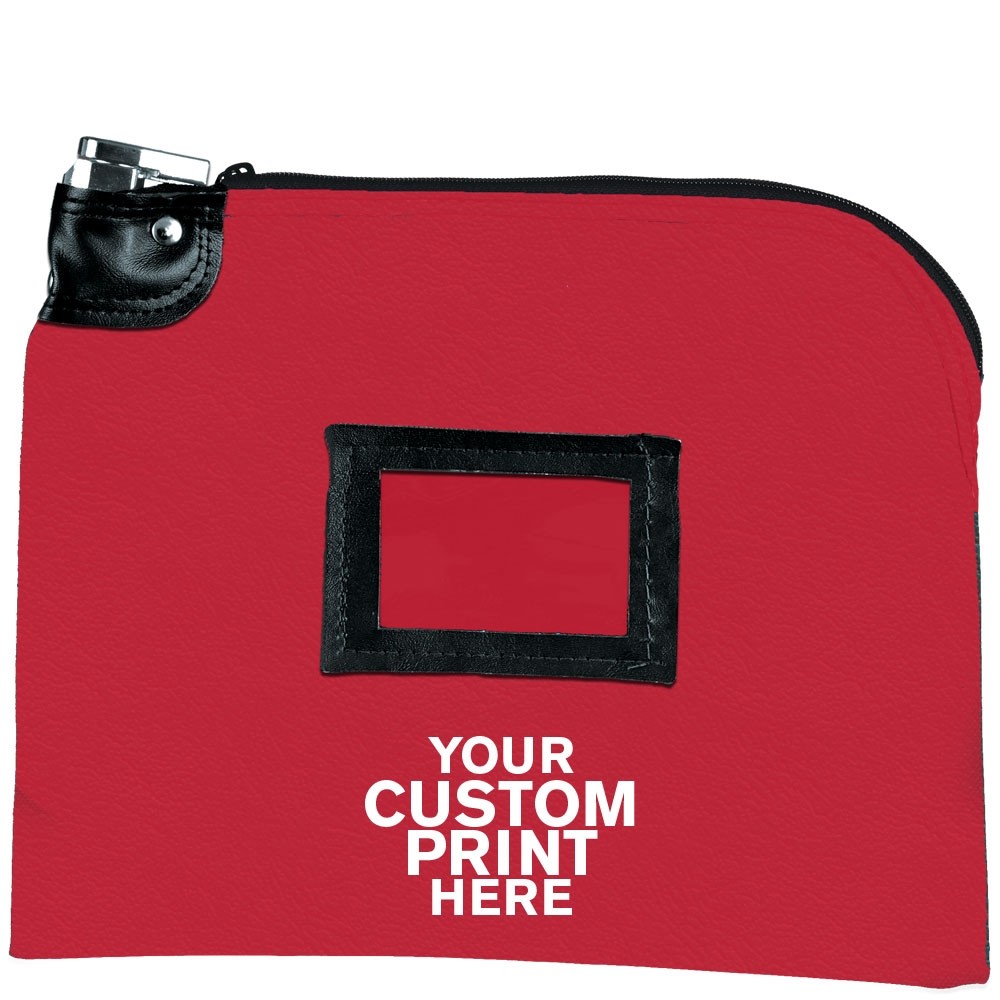 Imprinted Red Locking Bag 12W x 9H-Exp Vinyl, Keyed Alike Lock, Framed Cardholder