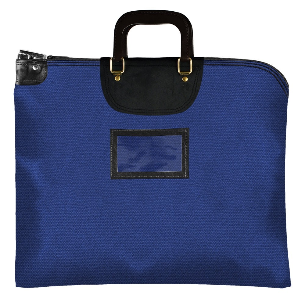 Royal Blue 14 oz. Cotton Canvas Locking Deposit Bag with Handle and Cardholder - 19W x 15H - Master-Keyed