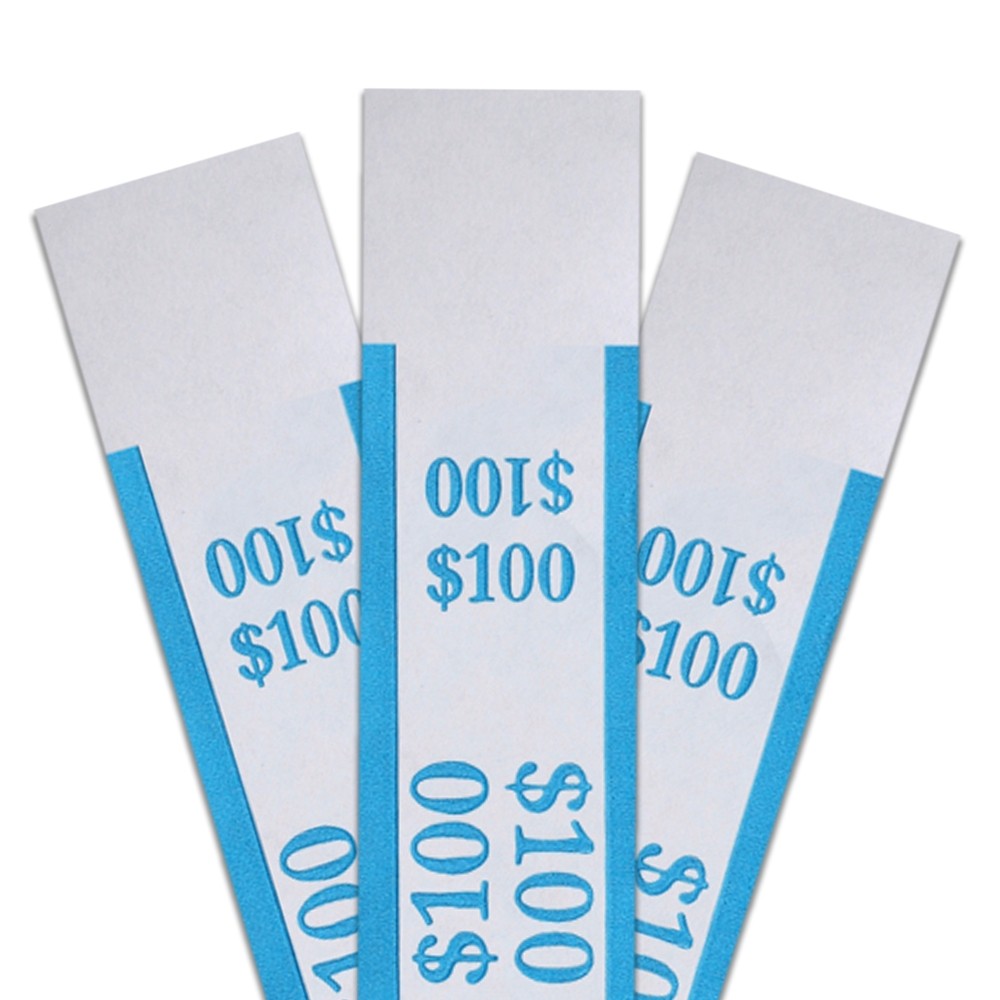 Fed compliant pressure-sensitive adhesive currency straps are printed with ABA-standard color bar. These currency wrappers correspond with denomination and capacity. Simply touch and seal the currency bands, making cash handling more organized!