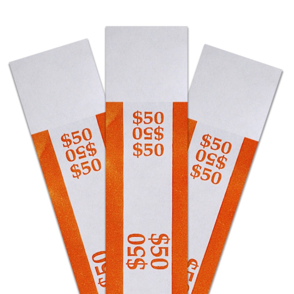 Fed compliant pressure-sensitive adhesive currency straps are printed with ABA-standard color bar. These currency wrappers correspond with denomination and capacity. Simply touch and seal the currency bands, making cash handling more organized!