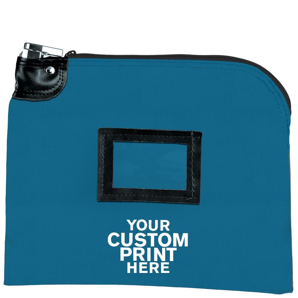 Teal 1000 Denier Nylon 1-Color Imprinted Locking Deposit Bag - 12W x 9H - Keyed Alike