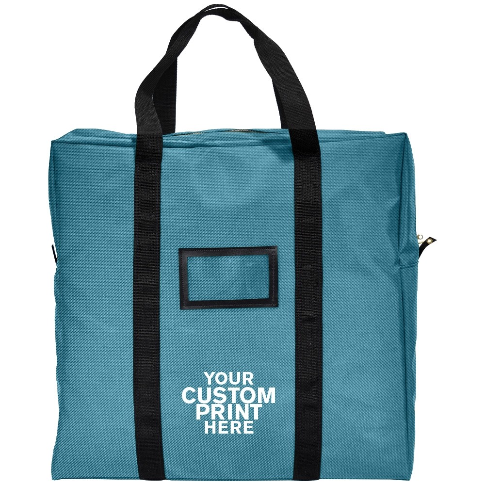 Measuring 20W x 20H x 5D (all bags are made +/- 1/4 in.), our bag offers ample space for your cassettes while maintaining a compact size for transport. The black-framed 5W x 3H cardholder provides convenient labeling for identification purposes.