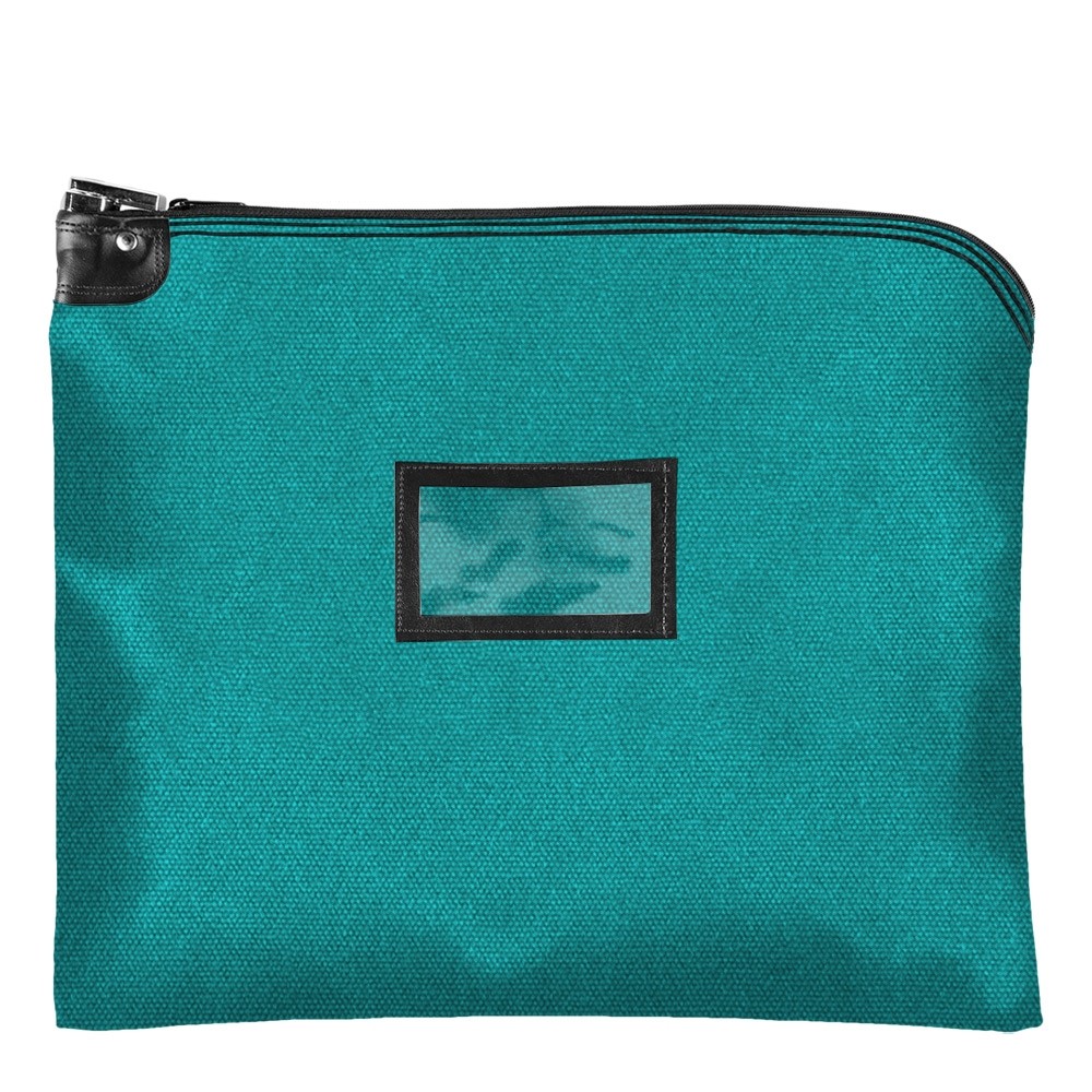 Teal 14 oz. Cotton Canvas 1-Color Imprinted Locking Deposit Bag with Cardholder - 19W x 15H - Keyed Alike