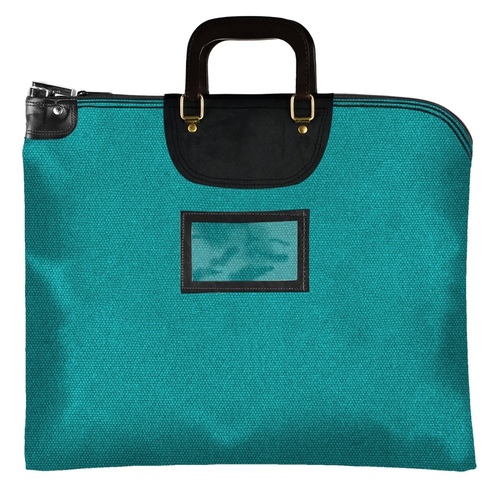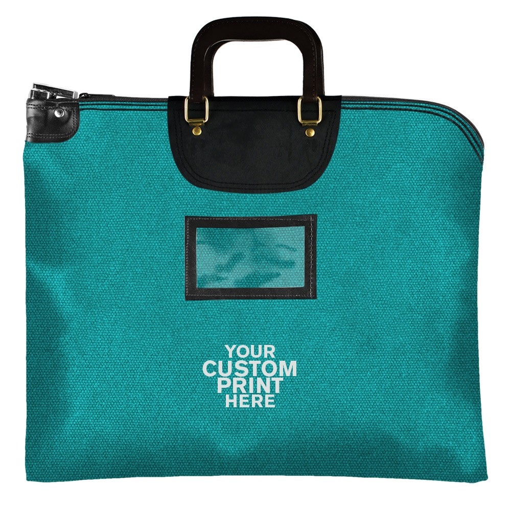Teal 14 oz. Cotton Canvas 1-Color Imprinted Locking Deposit Bag with Handle and Cardholder - 19W x 15H - Keyed Differently