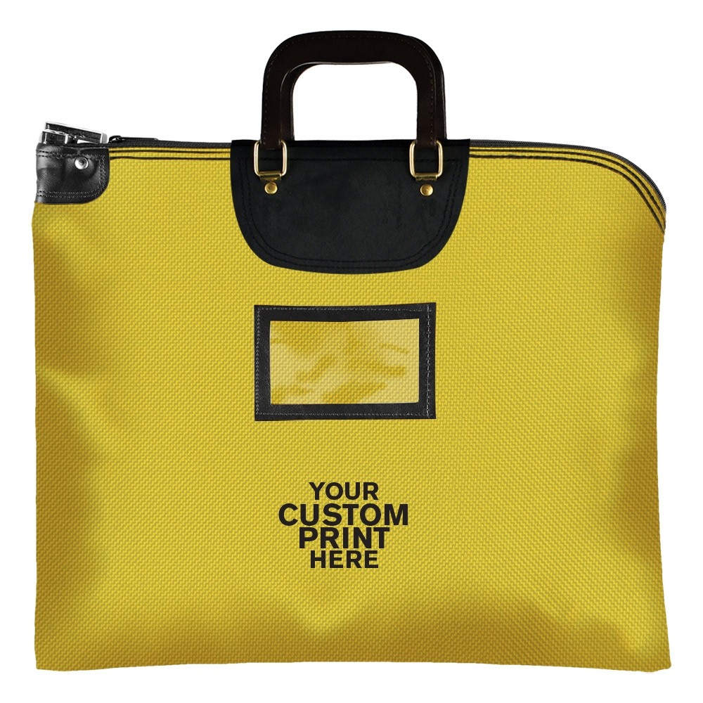 Yellow 1000 Denier Nylon 1-Color Imprinted Locking Deposit Bag with Handle and Cardholder - 19W x 15H - Keyed Differently